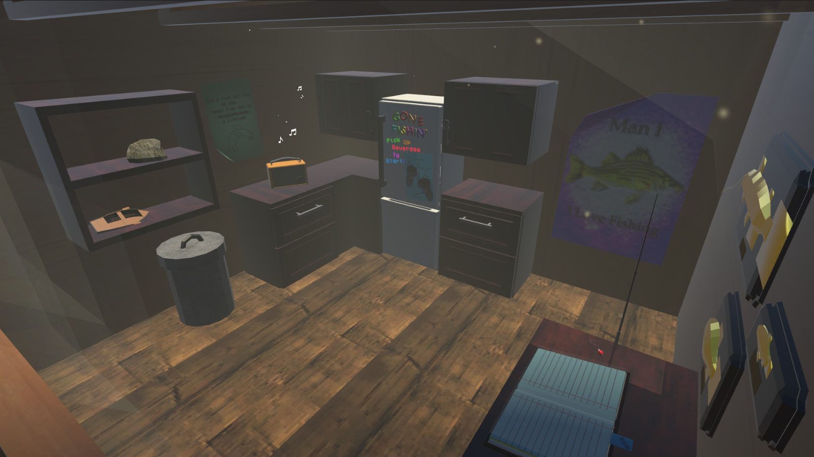 The main issue I ran into as the lead mechanics programmer was the physics-based rod and reel. It was difficult to get both the rod and reel to be interactable VR objects and be smooth without feeling sluggish to the player. I overcame this for the reel handle by using an invisible VR grab object as the real handle, which the visible handle follows the position of for the reel arm to move around with. And for the reel to work correctly and not feel sluggish, I joined it to the rod with a fixed joint and used a high mass to ensure the attachement was strong between them.